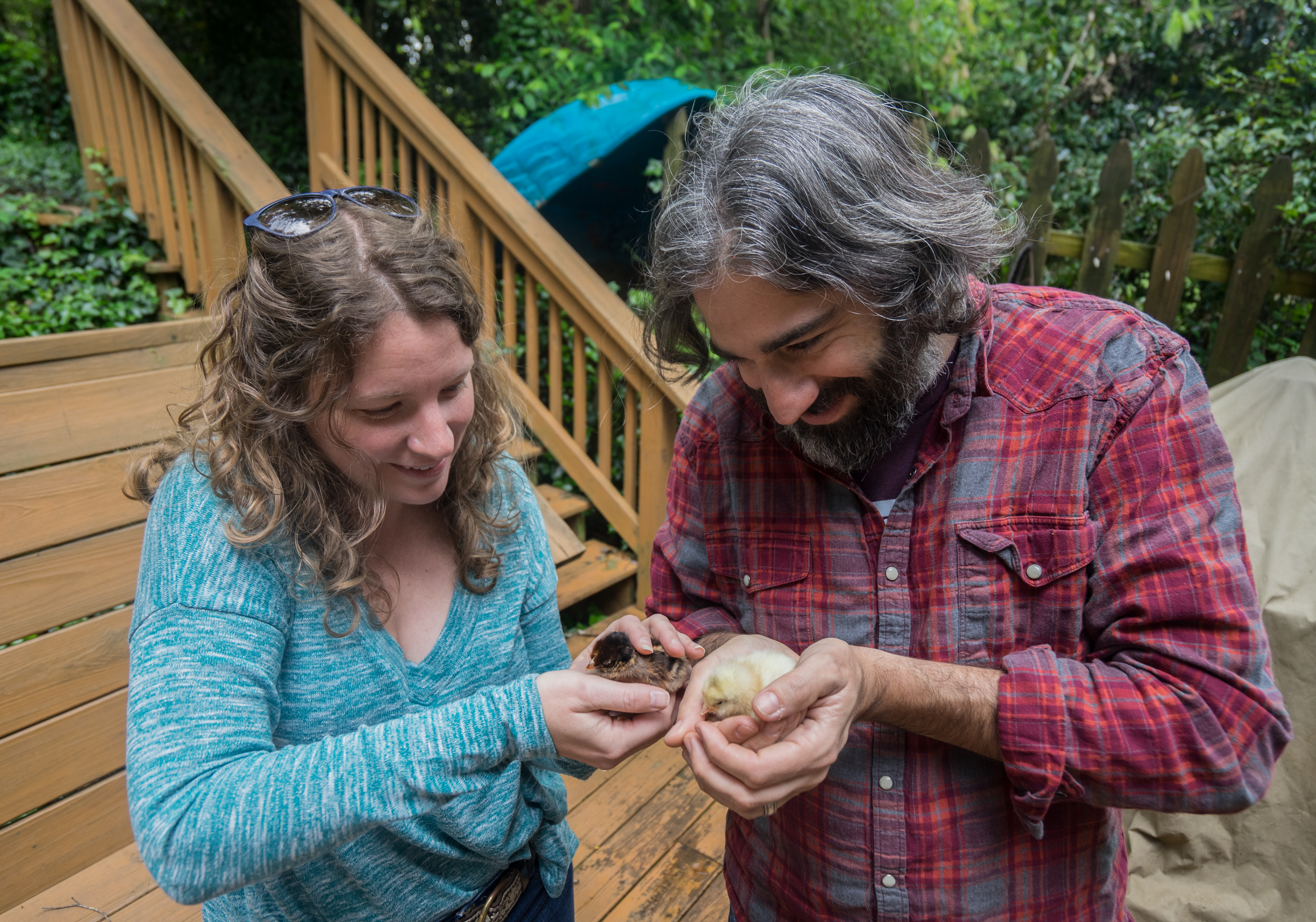 At last, warm peeps with food (some sort of medicated peep formula I got on Amazon – they seem to like it).