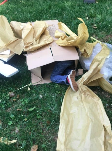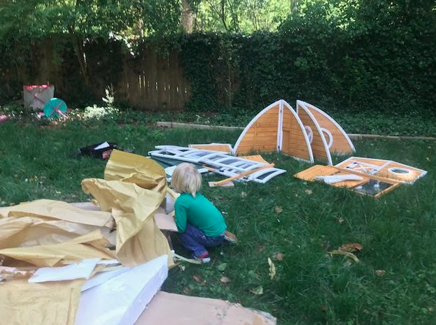 My 5-year-old son, Darral, makes a great assistant, and once I hefted the ridiculously heavy boxes to the backyard, was eager to assist in the construction and of course, keeping the work area clean.